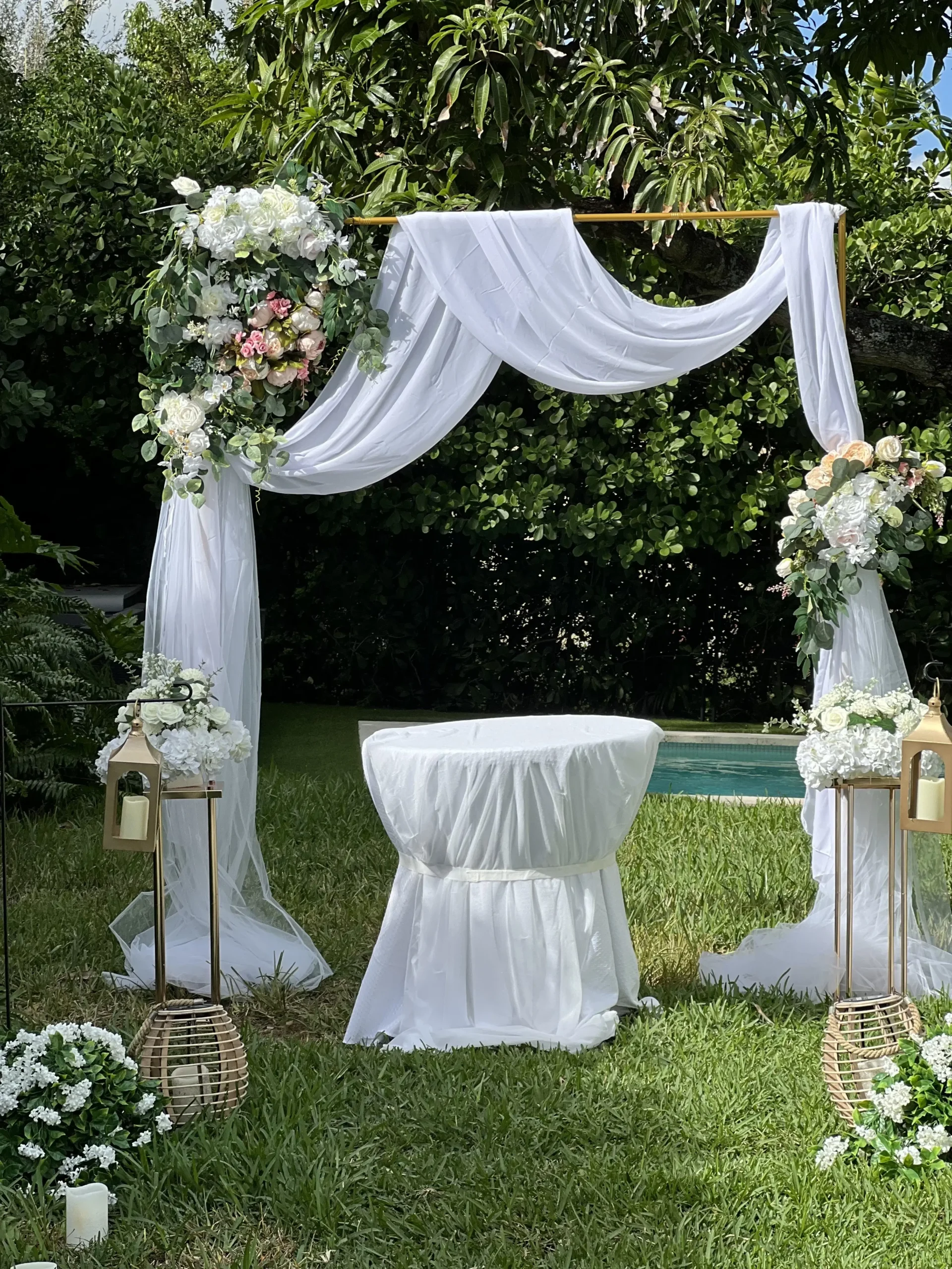 Perfect for beach weddings or park locations that do not require permits, this package enhances Package A with a complete styled setup for an intimate ceremony.